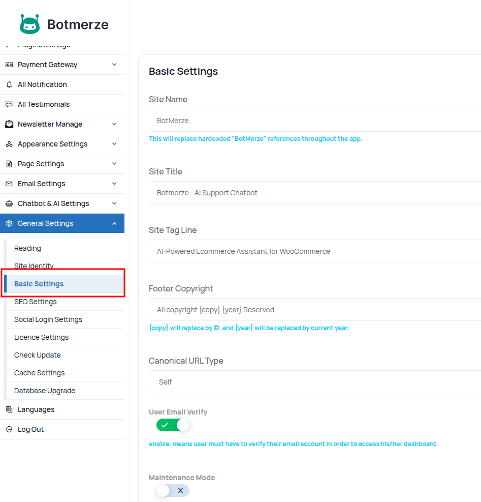 • Footer Copyright: footer copyright text, {copy} Will be replaced by © and {year} will be replaced by the current year.