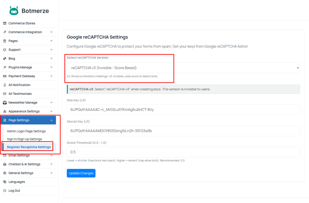 5. Google reCAPTCHA Settings
