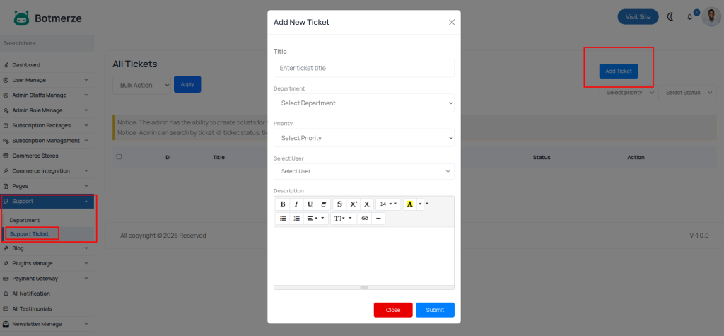 Add New Ticket