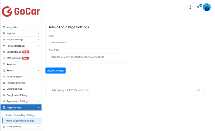 Admin Login Page Settings You can page settings manage easily. go to ” Page Settings > Admin Login Page Settings”. Doc navigationPage Settings → Was this article helpful to you? No Yes How can we help? Name Email Subject Message