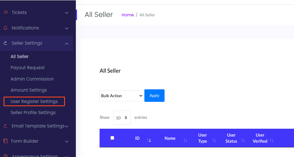 To setup an admin commission, login to the admin panel, go to user register settings page then click on User register setting.